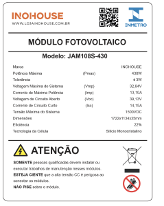 Tensão na Potência Nominal (Vmp): 33,24V;