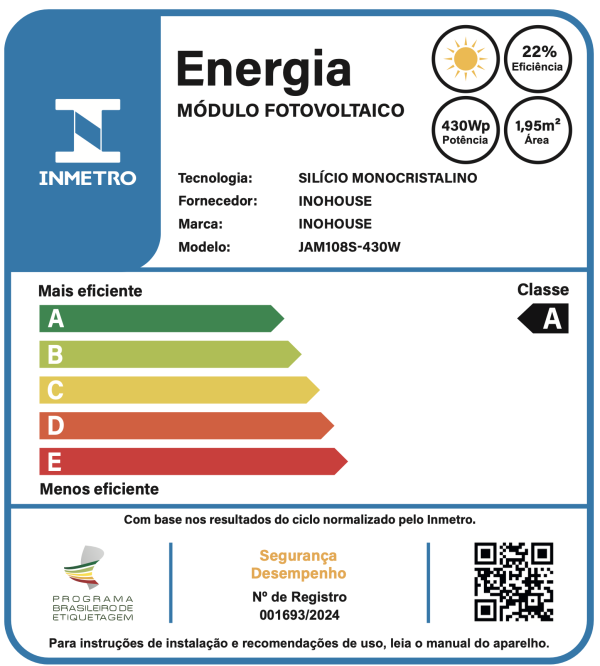 Placa Solar 430w Monocristalino Nota A Inmetro Inohouse
